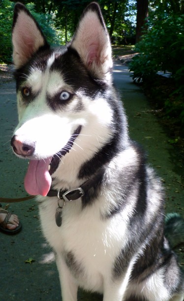 Cody’s dark features and intriguing mismatched blue/brown eyes belie a more simple, sweet disposition. Give him some peanut butter and a long run in the park and he will be a happy husky. I imagine the biggest obstacle for Cody and his owner’s is the constant public attention. Can’t a dog take a walk in peace?! Jeez.