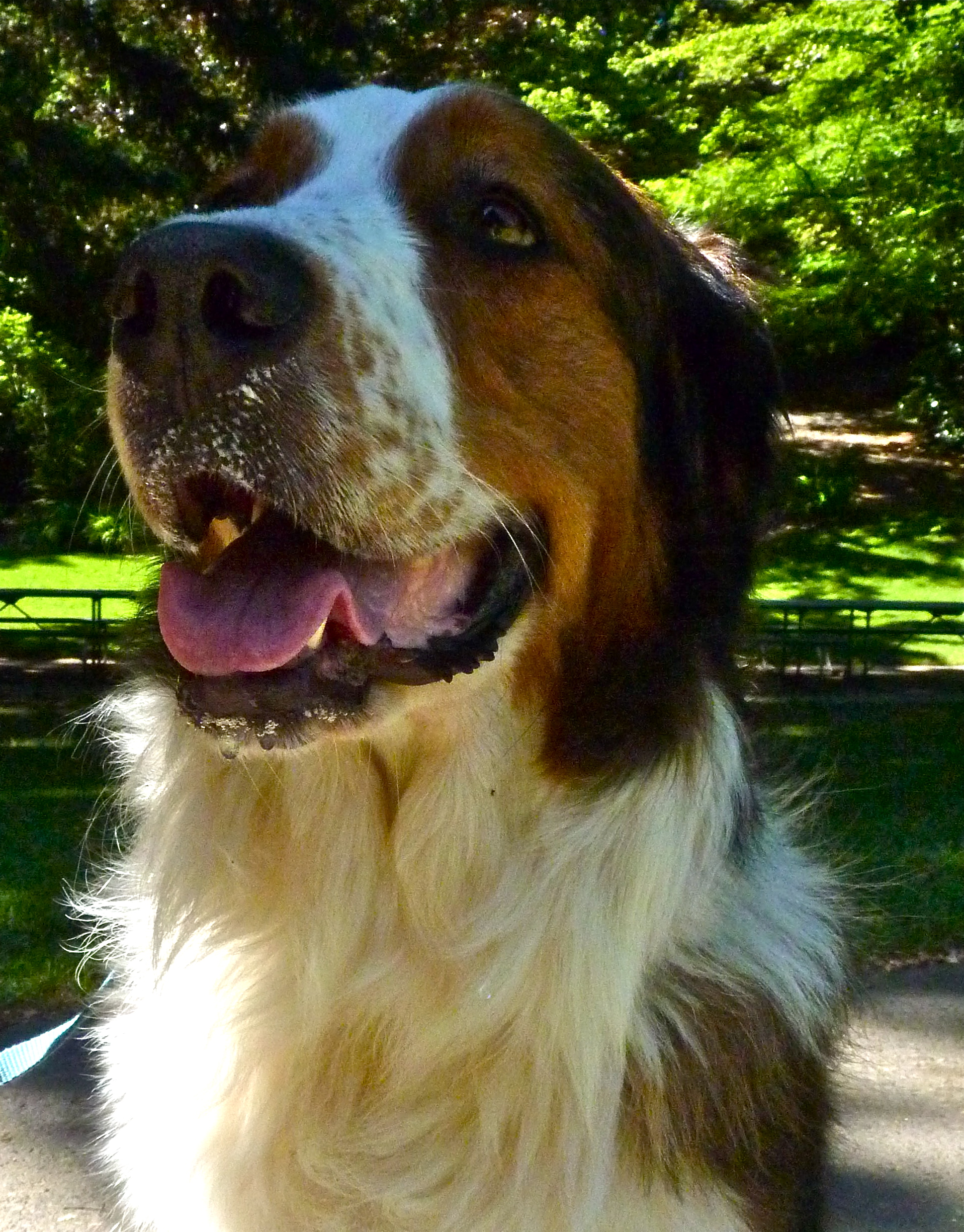 Tessa is an impressive dog, the kind of shaggy beast that turns heads for her sheer size and hairiness. It’s only when you get closer, in this case, close enough to stop her owner and awkwardly try to explain that you’re starting a pet blog, that you appreciate Tessa’s other less physically imposing qualities.